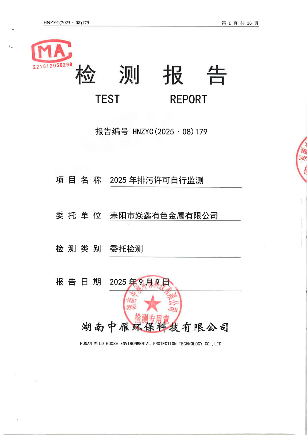 2025年排污许可自行监测检测报告